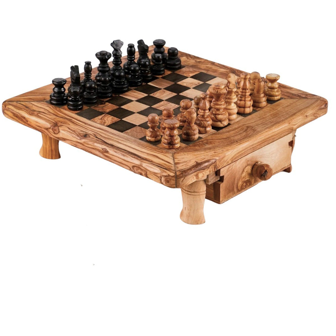 Schachbrett aus Olivenholz mit integriertem Stauraum