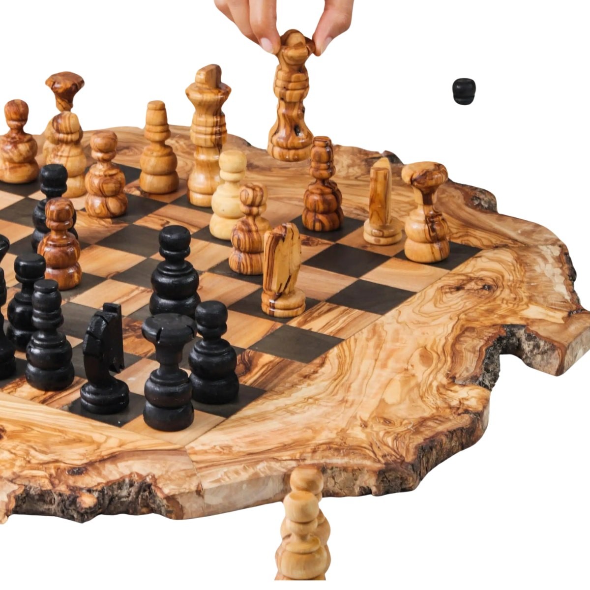 Dieses elegante und edle Schachset aus Olivenholz vereint die Schönheit des Naturholzes mit der strategischen Spannung des Spiels. Jede Figur verleiht Ihren Partien eine individuelle Note und sorgt für ein angenehmes und vergnügliches Spielerlebnis. Die robuste und charaktervolle Oberfläche des Olivenholzes garantiert Langlebigkeit und unvergleichliche Ästhetik. Dieses Set ist ideal für Schachbegeisterte und kombiniert Tradition und modernes Design zu einem fesselnden Erlebnis.