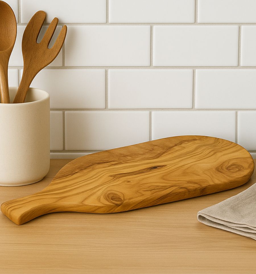 Découvrez cette magnifique planche à découper avec manche en bois d’olivier, entièrement façonnée à la main. Sa forme organique et son veinage naturel en font une pièce unique, parfaite pour sublimer vos moments en cuisine comme à table.