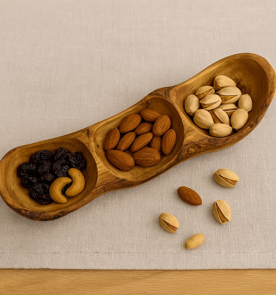 Triple Section Olive Wood Serving Dish